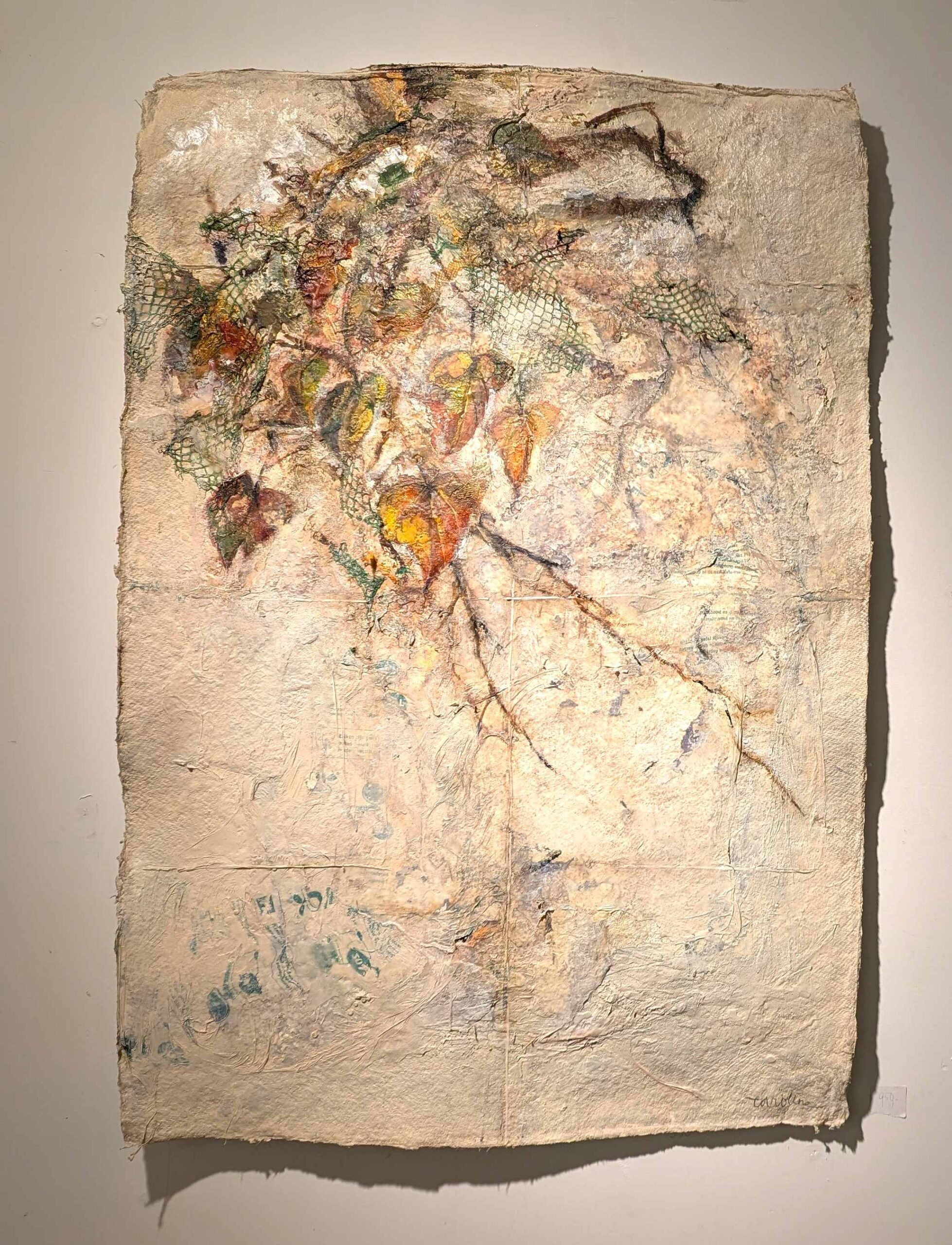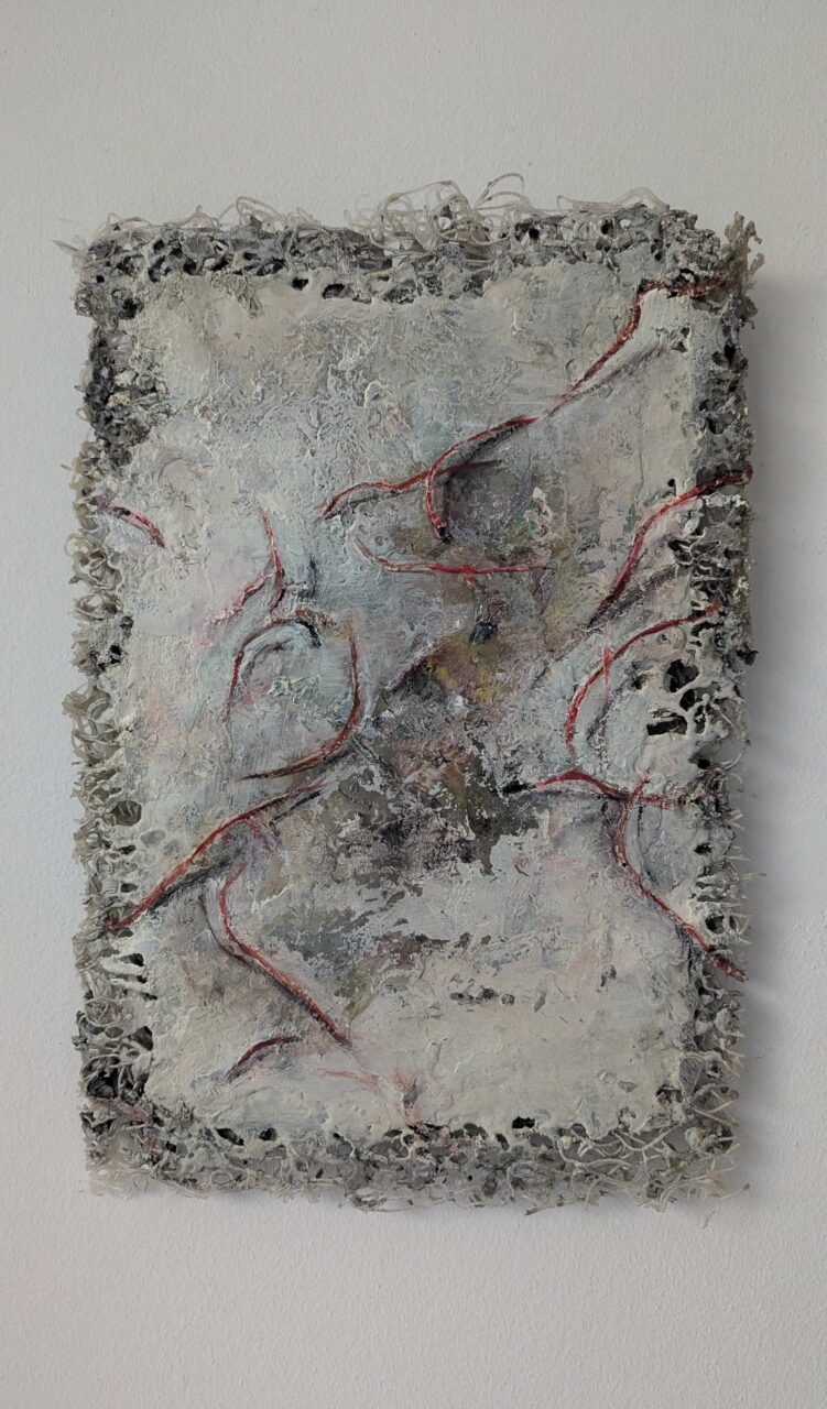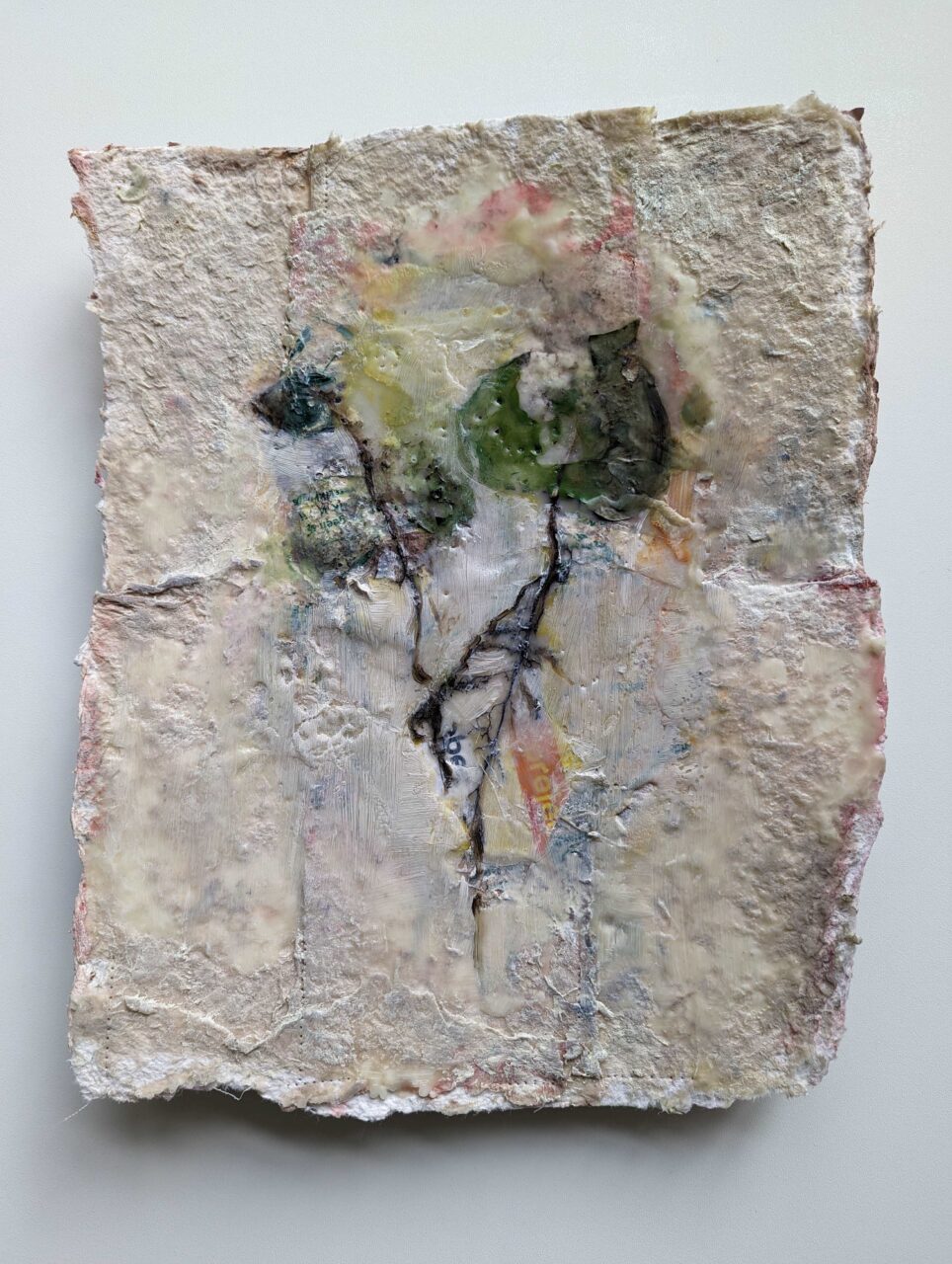 30 x 40 cm, geschept papier, plastic, bijenwas, olieverf