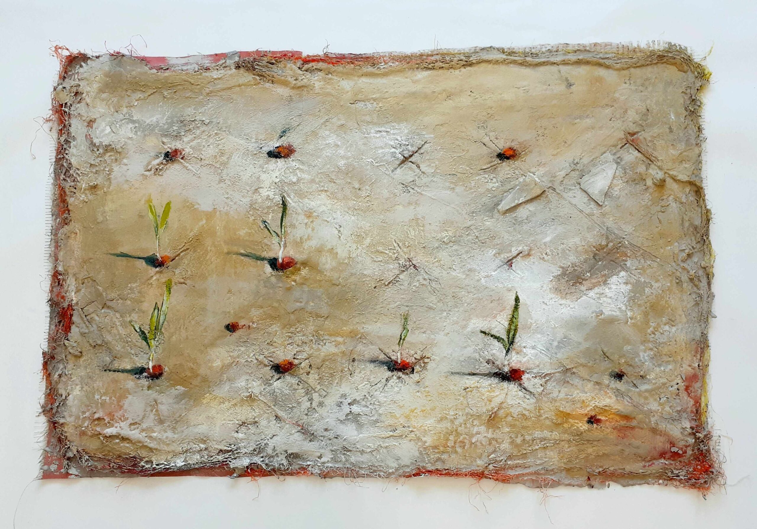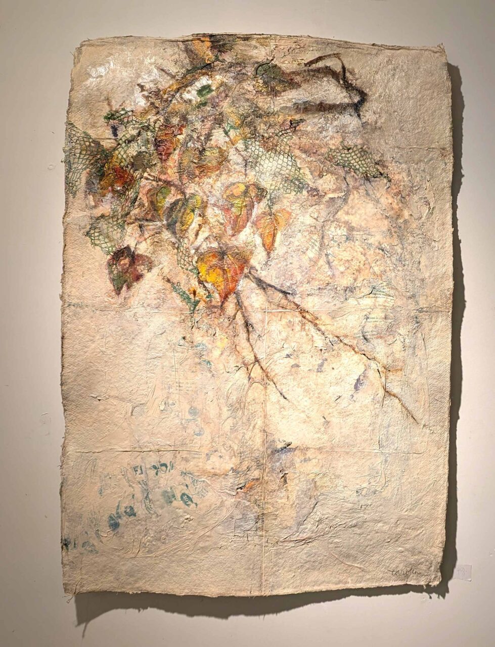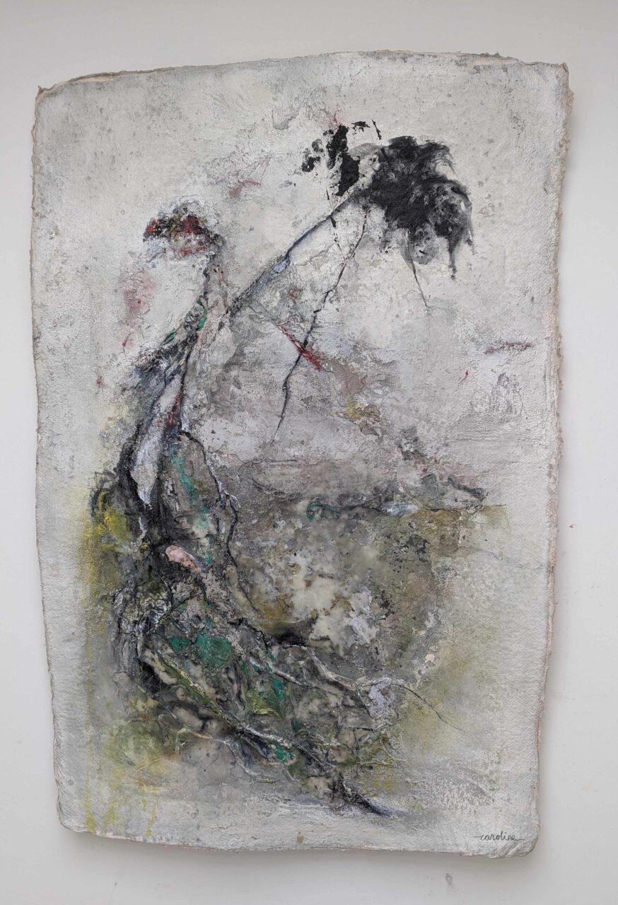 30 x 40 cm, geschept papier, plastic, bijenwas, olieverf