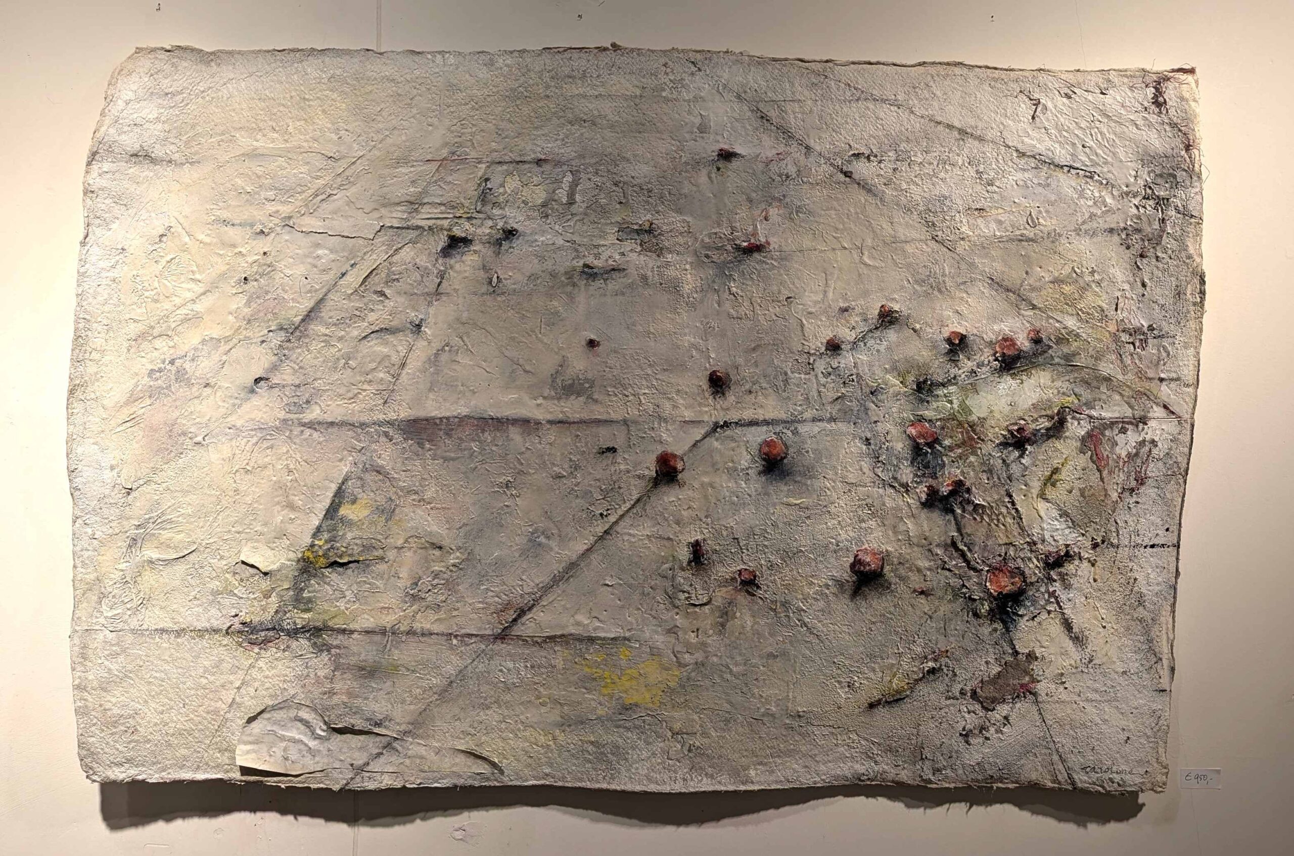 70 x 100 cm, geschept papier, plastics, cement, olieverf bijenwas