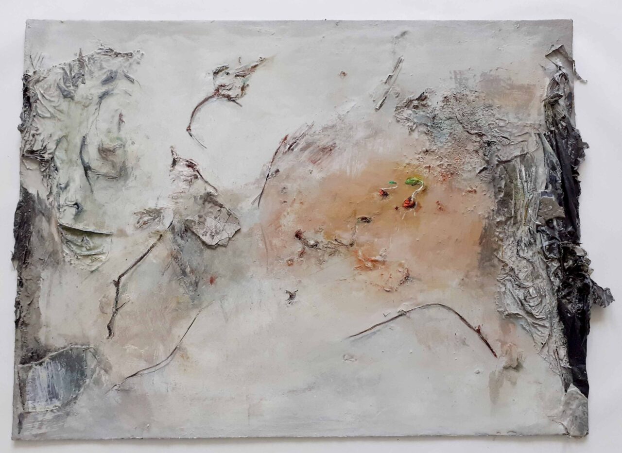 83 x 62 cm, plastics, cement, olieverf, pigmenten op paneel